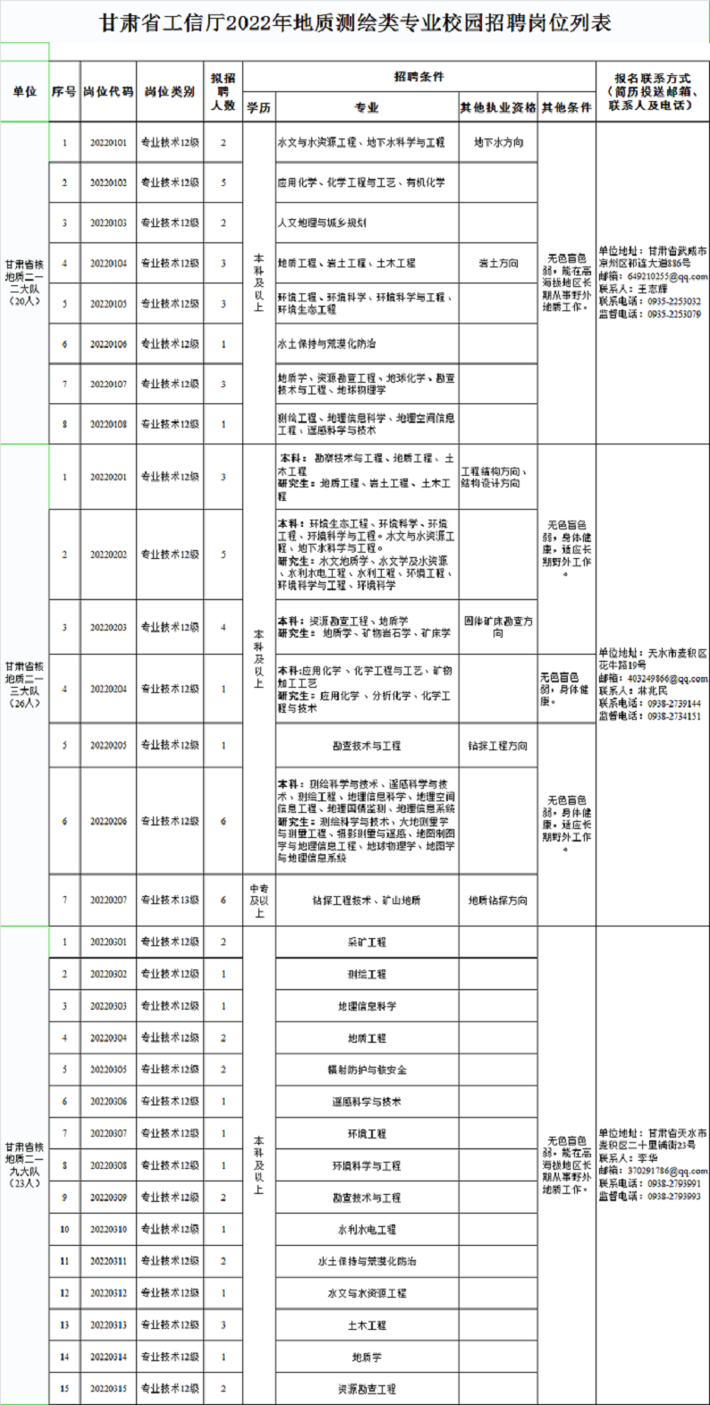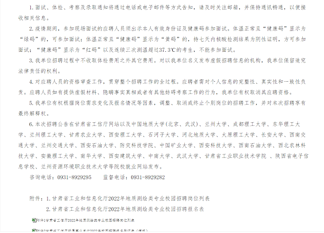 附件1:《甘肅省工信廳2022年地質(zhì)測(cè)繪專業(yè)校園招聘公告》